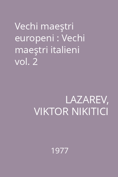| Titlu | Vechi maeştri europeni : Vechi maeştri italieni vol. 2 |