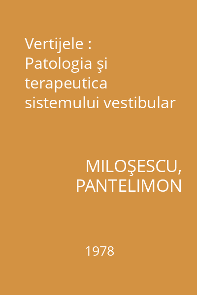 | Titlu | Vertijele : Patologia şi terapeutica sistemului vestibular |
