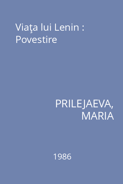 | Subiect | Lenin, Vladimir Ilici (viaţa) |