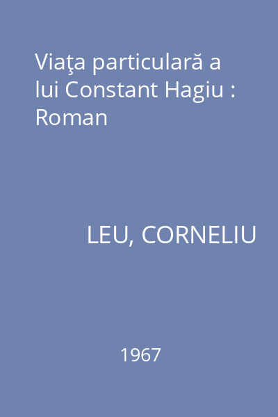 | Titlu | Viaţa particulară a lui Constant Hagiu : Roman |