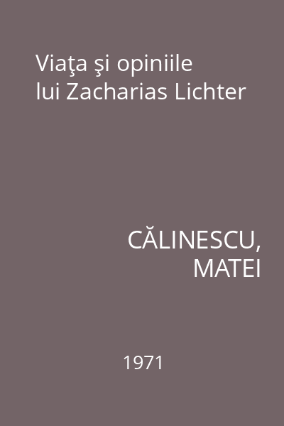 | Titlu | Viaţa şi opiniile lui Zacharias Lichter |