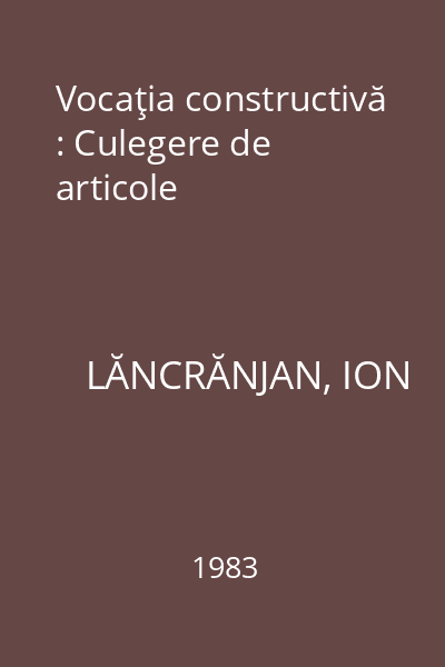 | Titlu | Vocaţia constructivă : Culegere de articole |