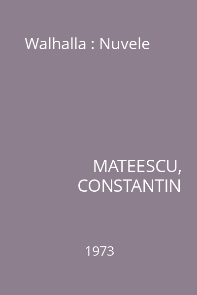 | Titlu | Walhalla : Nuvele |