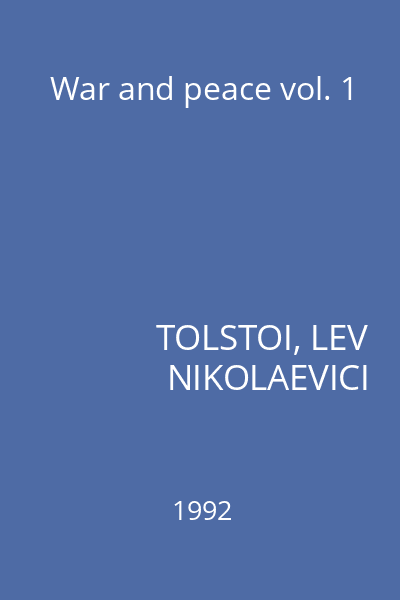 | Titlu | War and peace vol. 1 |