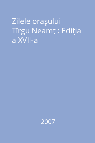 | Titlu | Zilele oraşului Tîrgu Neamţ : Ediţia a XVII-a |