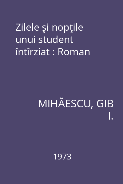 | Titlu | Zilele şi nopţile unui student întîrziat : Roman |